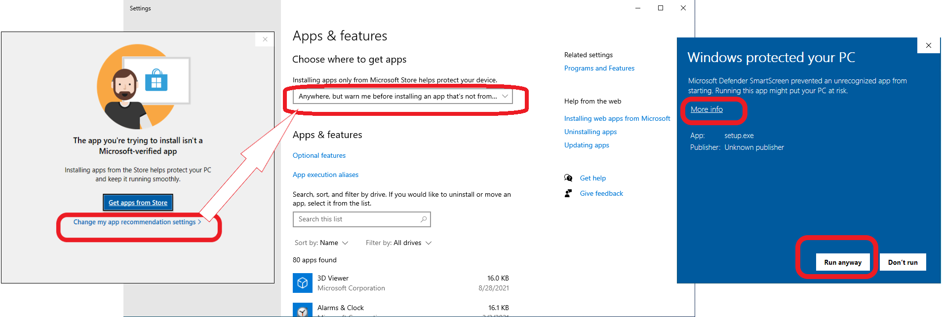 - For “Choose where to get apps”, select: Anywhere, but warn me before installing an app that’s not from the Microsoft Store.